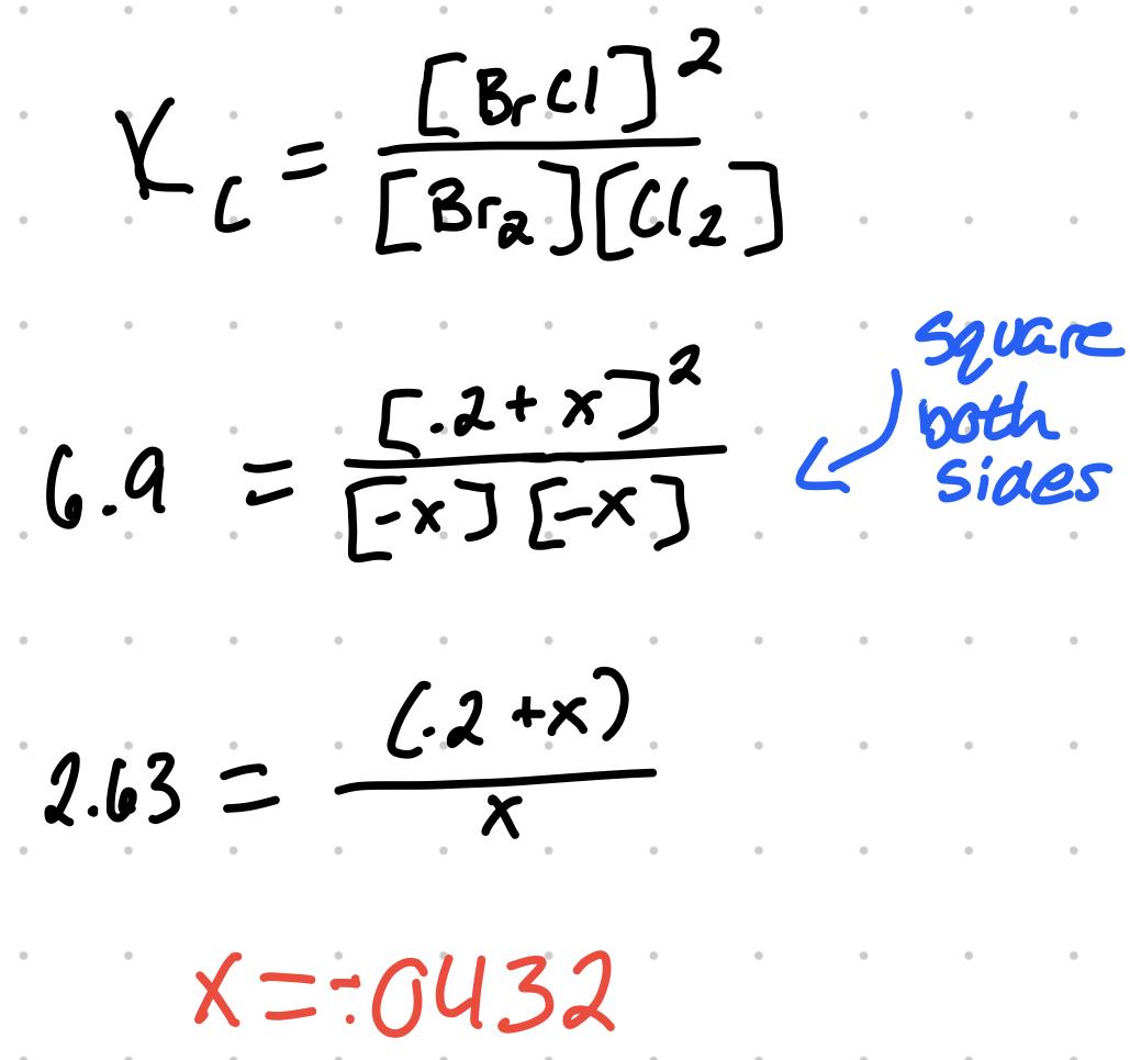 - Given the x value found, [Br2] and [Cl2] = .0432 and [BrCl] = .114M