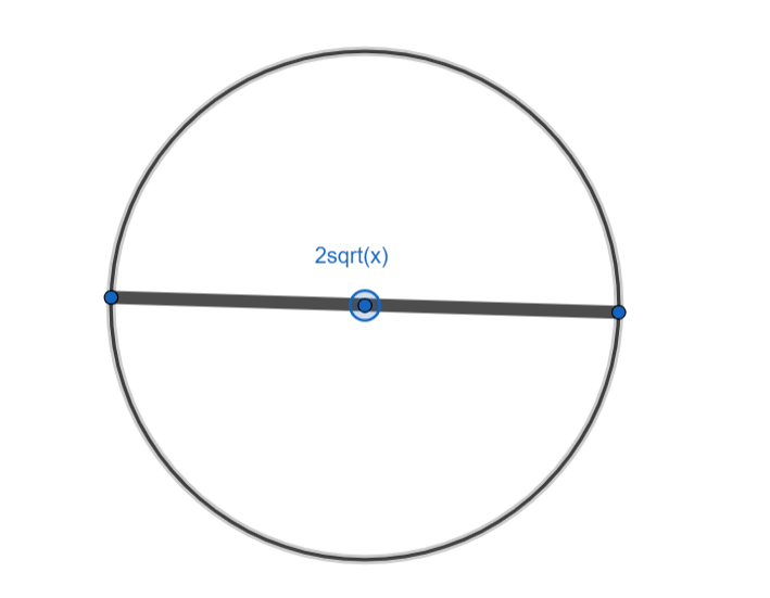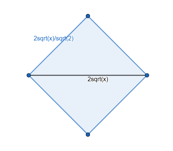 With this, we just have to divide the side lengths by sqrt(2) to find the area → A=\left(\frac{2\sqrt{x}}{\sqrt2}\right)^2