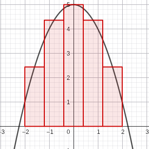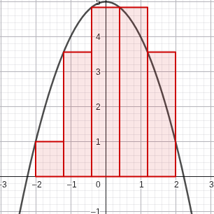 Here’s an example of each with the function f(x) = -x² + 5 with 5 rectangles: