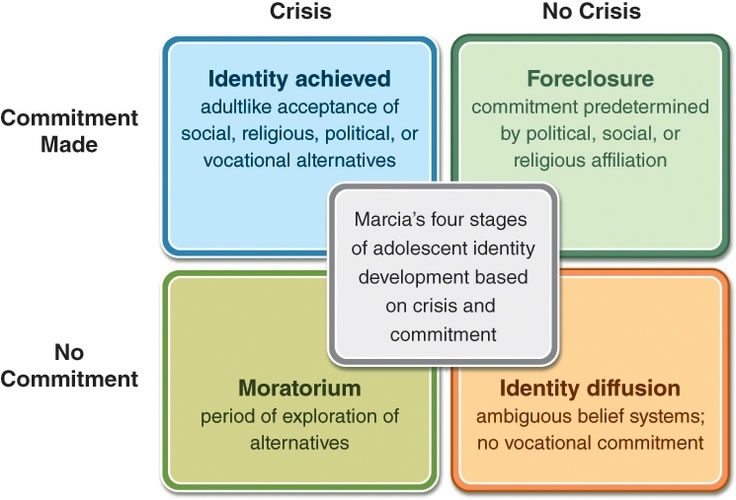 • They can try out different aspects of their identity without finally committing to it (e.g., temporarily adopting different religious beliefs, changing views about vocations, etc.)