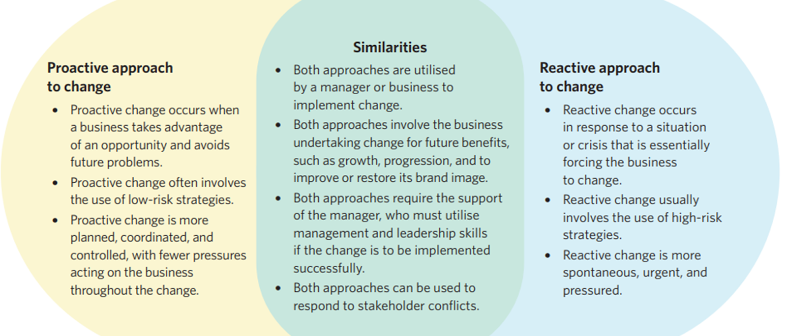 - Proactive change anticipates future business impacts and implements changes to minimise them.