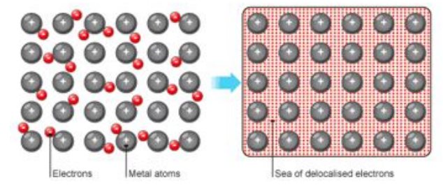delocalised electrons are free to move through the structure