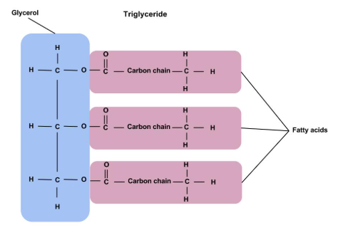 Fatty Acids: are longer chains of carbon molecules attached to the glycerol backbone.
