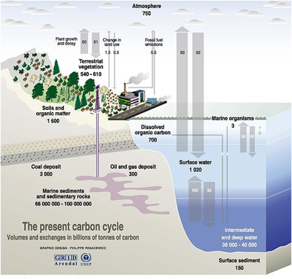Various sources and sinks of carbon