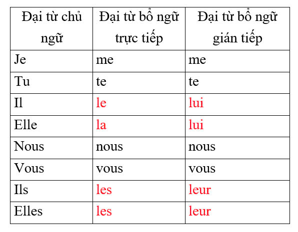 Đại từ bổ ngữ trực tiếp thay thế cho danh từ / đại từ chỉ người hoặc vật làm bổ ngữ trực tiếp trong câu.
