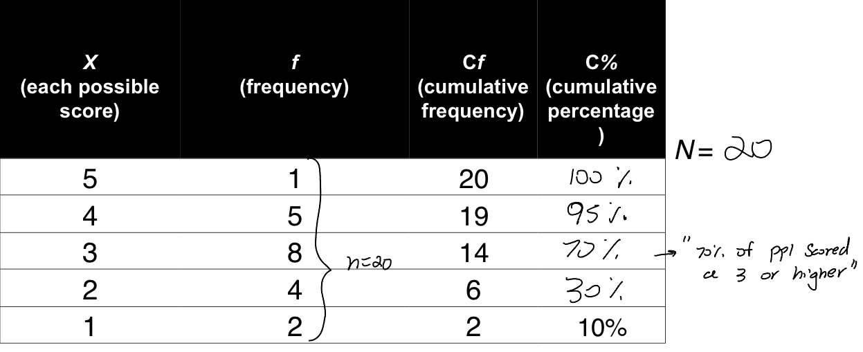 the number of people at or below that score