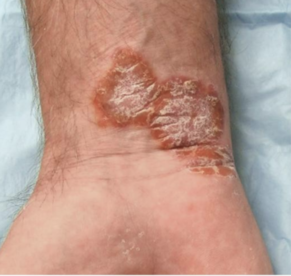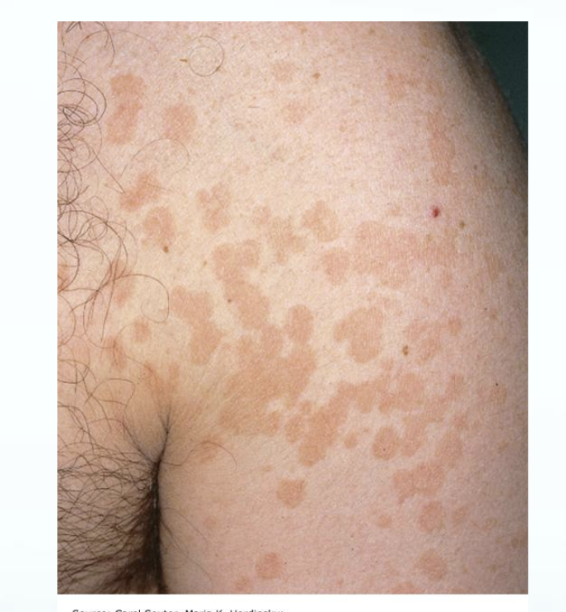 Scale: dry, flaky, patches on skin that can appear white.