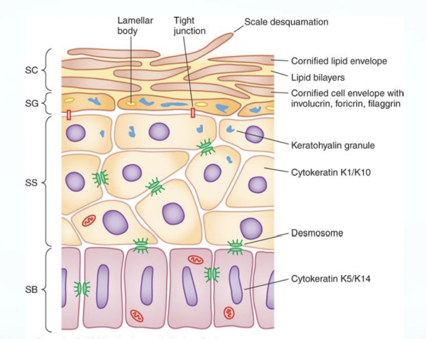 Important structural and metabolic proteins are produced at specific layers of the epidermis