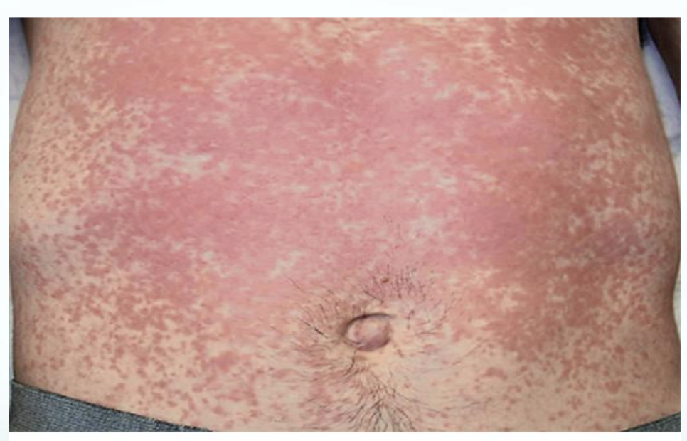 Rash: A rash may develop, typically in the folds of the skin, such as behind the knees or in the crook of the elbows.