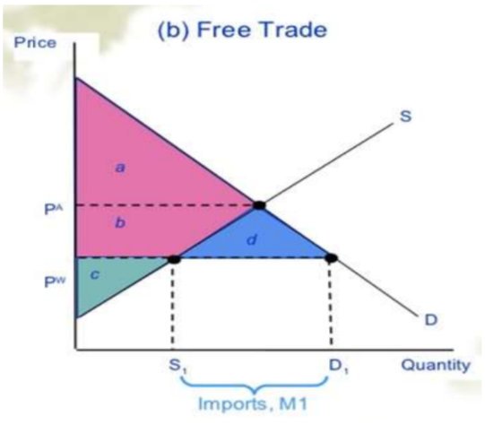 At PW consumers demand D1 but domestic suppliers are only willing to produce S1. Therefore M1 products are imported from abroad.