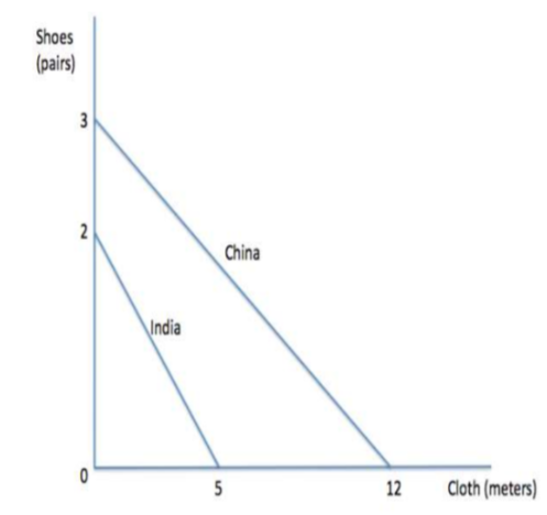 Therefore, China should produce cloth and India should produce shoes