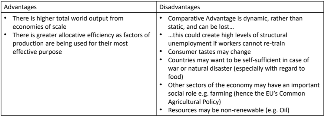 Comparative advantage is good at explaining why countries rich in raw materials or with lots of agricultural land will specialise in these commodities.
