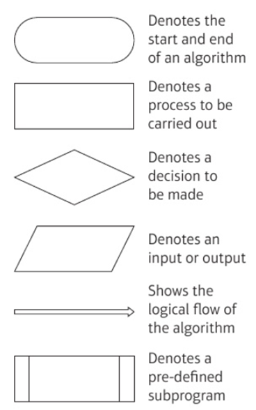 1.1.2 Understand how to create an algorithm to solve a particular problem, making use of programming constructs (sequence, selection, iteration) and using appropriate conventions (flowchart, pseudocode, written description, draft program code).