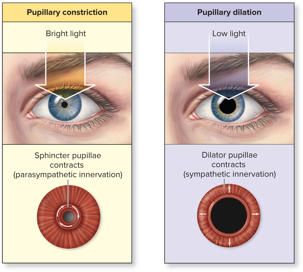 When relatively bright light enters one or both eyes, both pupils will constrict (get smaller) together. This is a parasympathetic reflex of the autonomic nervous system (ANS) that is controlled by the sphincter pupillae muscle of the iris.