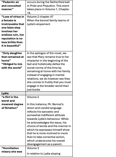 | Volume 3 Mr Darcy speaking to Elizabeth about Lydia’s actions and speaks to Austen’s overarching authorial choices |
