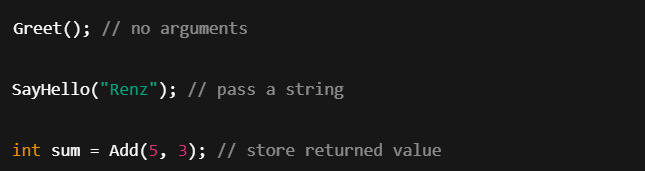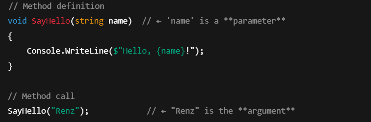 Console.WriteLine(Greet());🧠 How to Call a Method