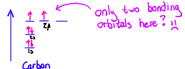 To get methane, carbon would need to have four identical orbitals