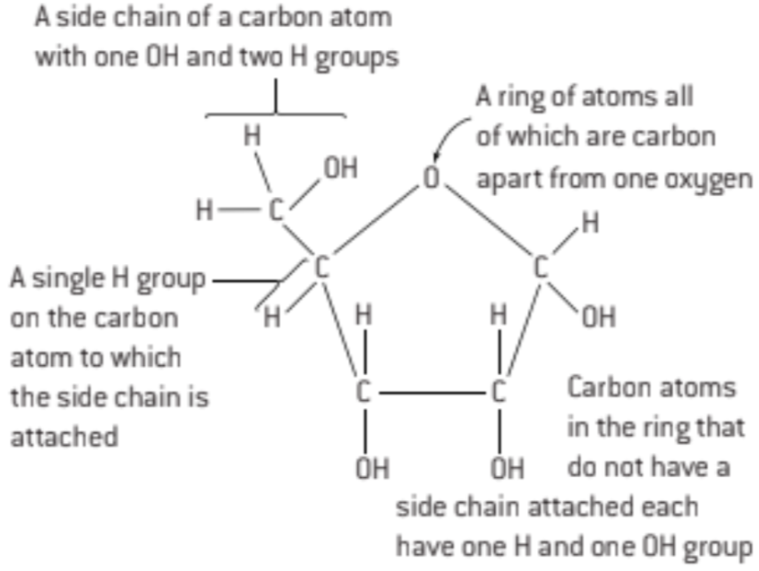 S1 Drawing molecular diagrams of glucose, ribose, a saturated fatty acid and a generalized amino acid