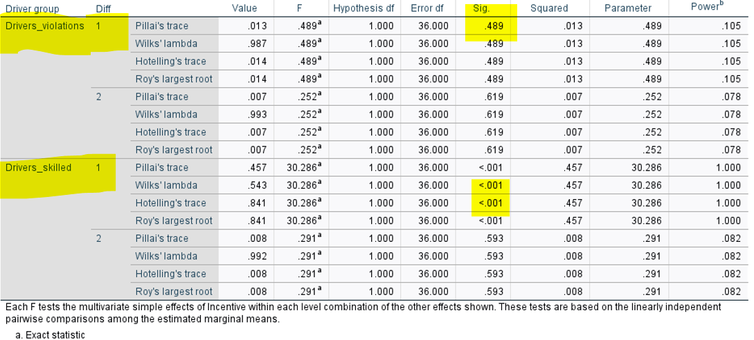 Look at multivariate and univariate tests for these
