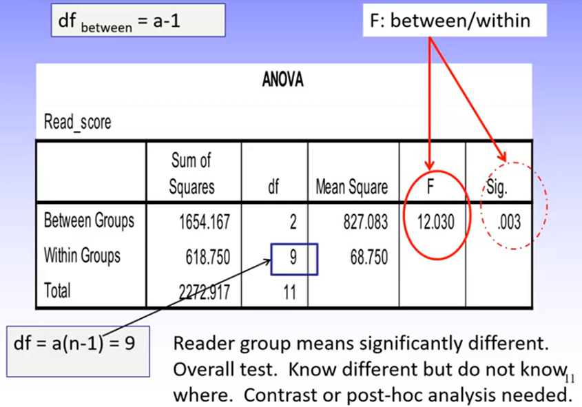 Recall that dfbewteen = a-1, and dfwithin = a(n-1)