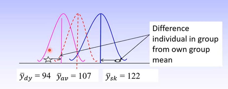 In a ‘good’ model, we would expect very little difference between the individuals score and their group mean, so SSwithin would be very small.