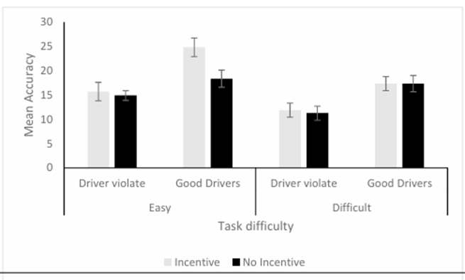 For drivers with no violations, accuracy was not expected to differ between incentive conditions