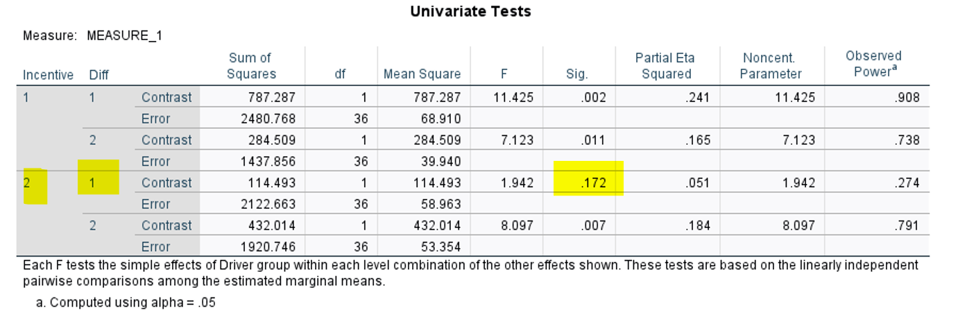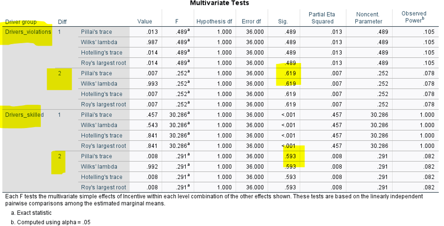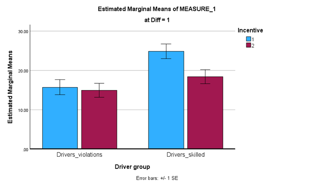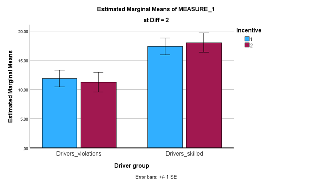 There is no sig 2-way interaction between task difficulty and driver group, or between incentive and driver group