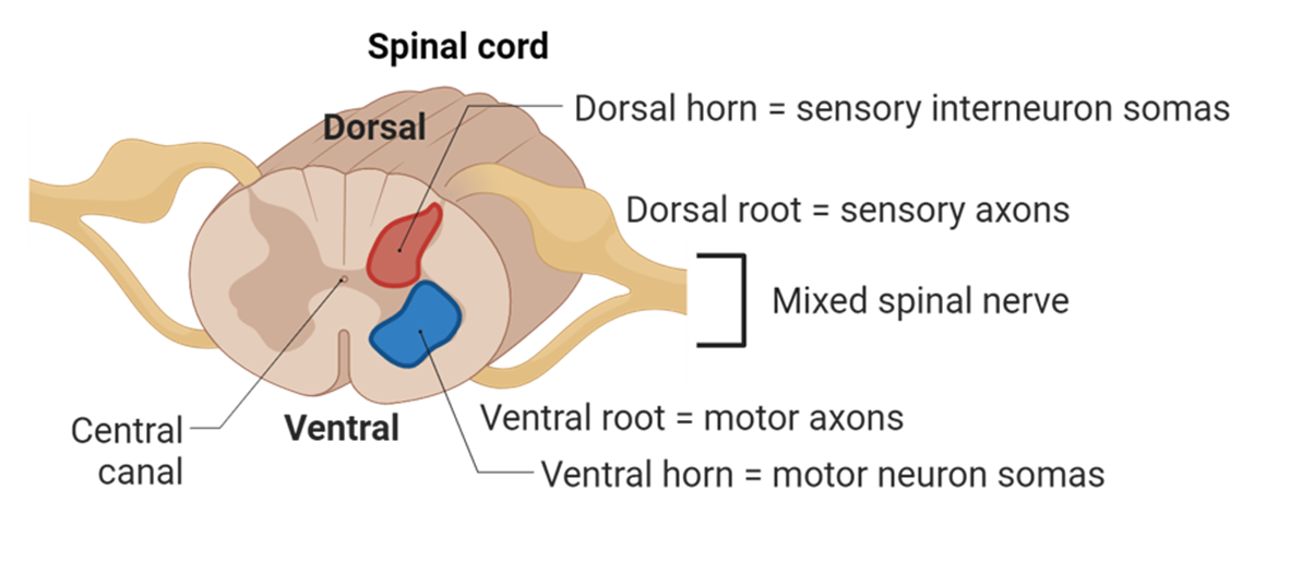 Ventral root: Carries motor neurons.