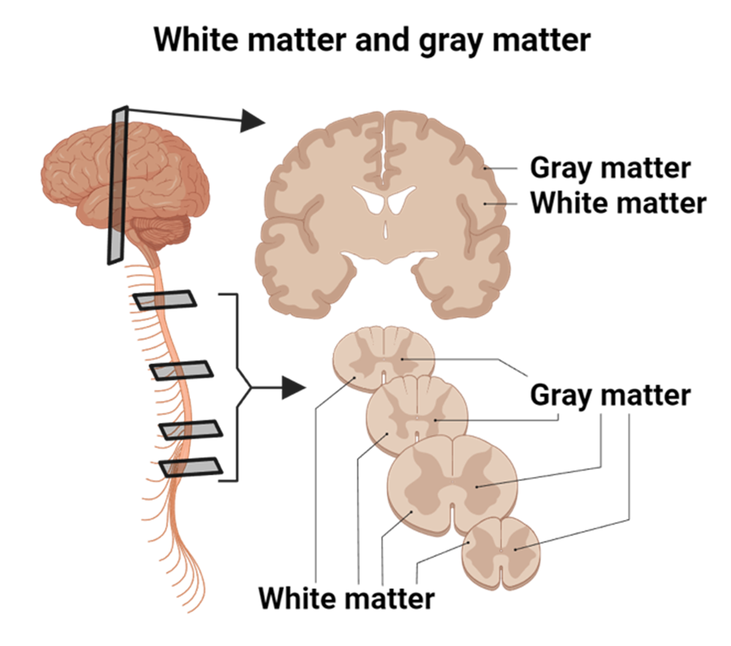 Ventral Horn (Gray Matter): Houses motor neurons, which send signals to muscles.