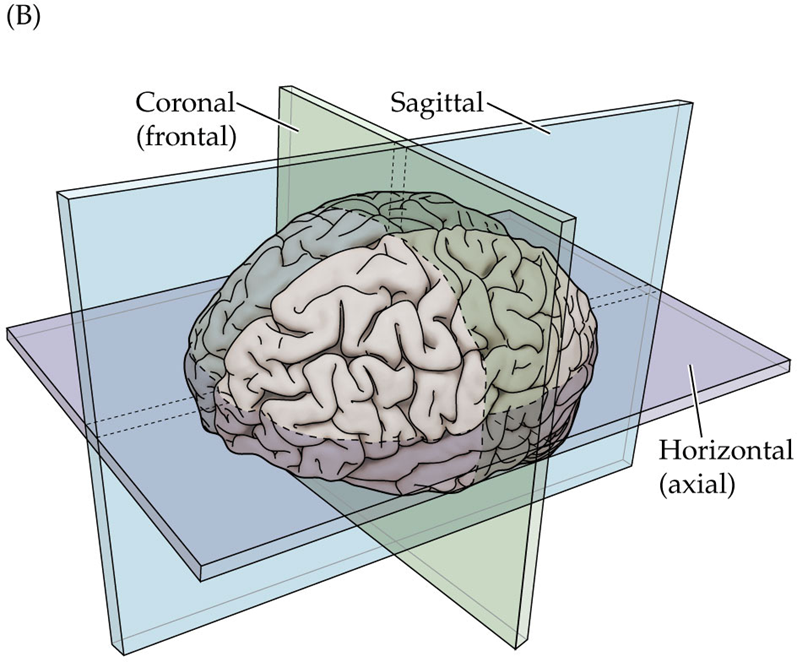 Horizontal (Axial): A plane that divides the brain into upper and lower sections.
