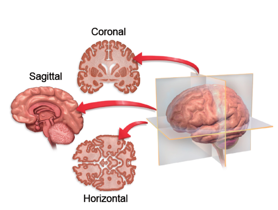 Coronal (Frontal): A plane that divides the brain into front and back sections.