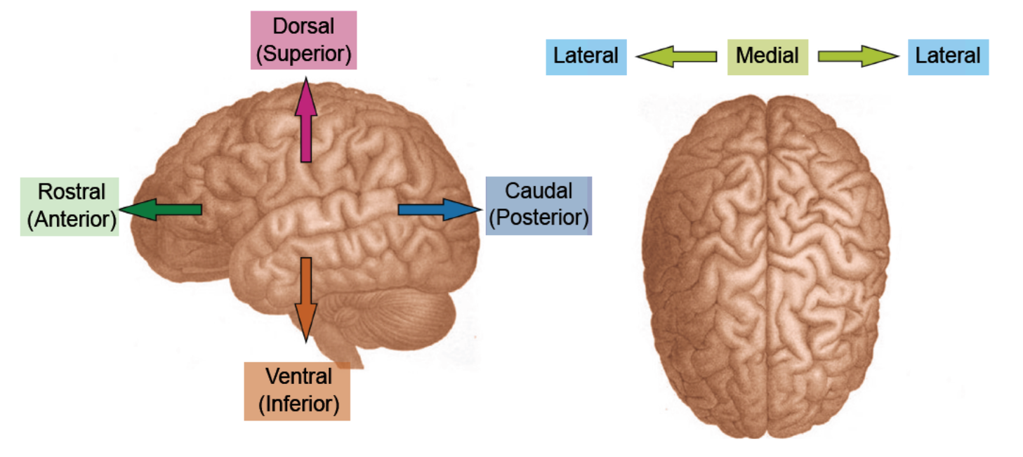 Rostral (Anterior): Refers to the front of the brain or toward the nose.