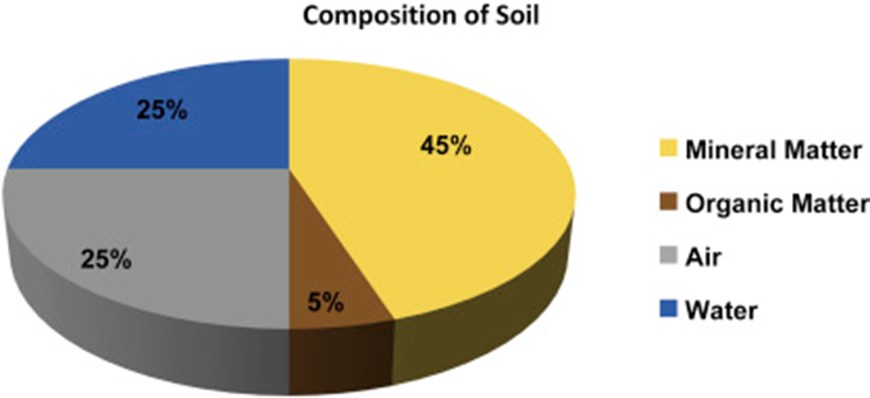 - Air or gases - from atmosphere reactions of roots, microbes and chemicals of the soil.