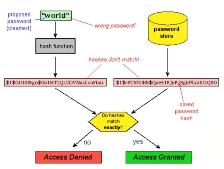 - The verifier puts the answer to the challenge (ex: The proposed password given in plaintext) through a hash function and checks to see if the hashes match, and if so then access is granted