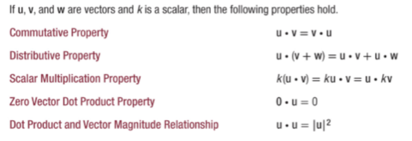 Dot Product Properties:
