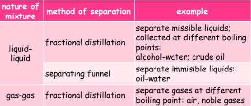 Fractional Distillation: Separates miscible liquids with close boiling points.