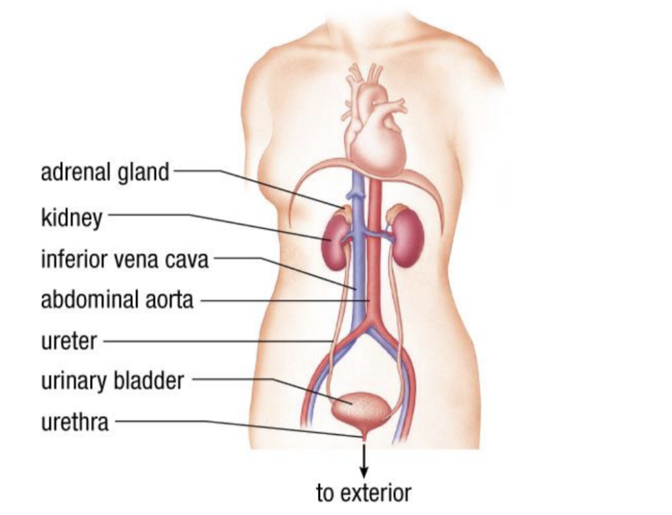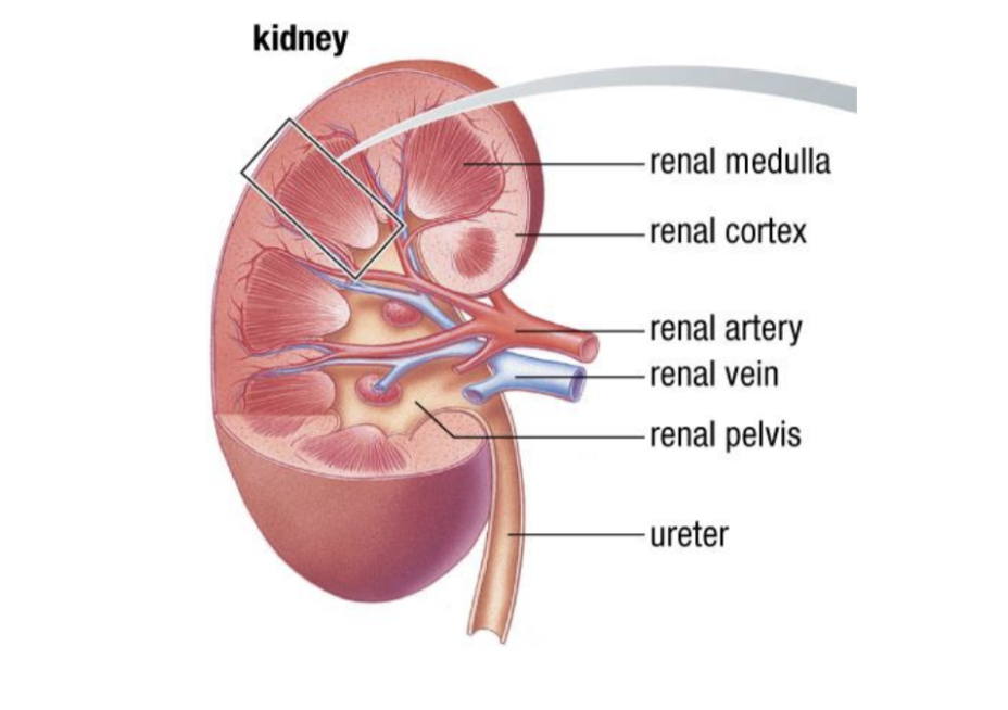 - renal artery supplies blood (waste)