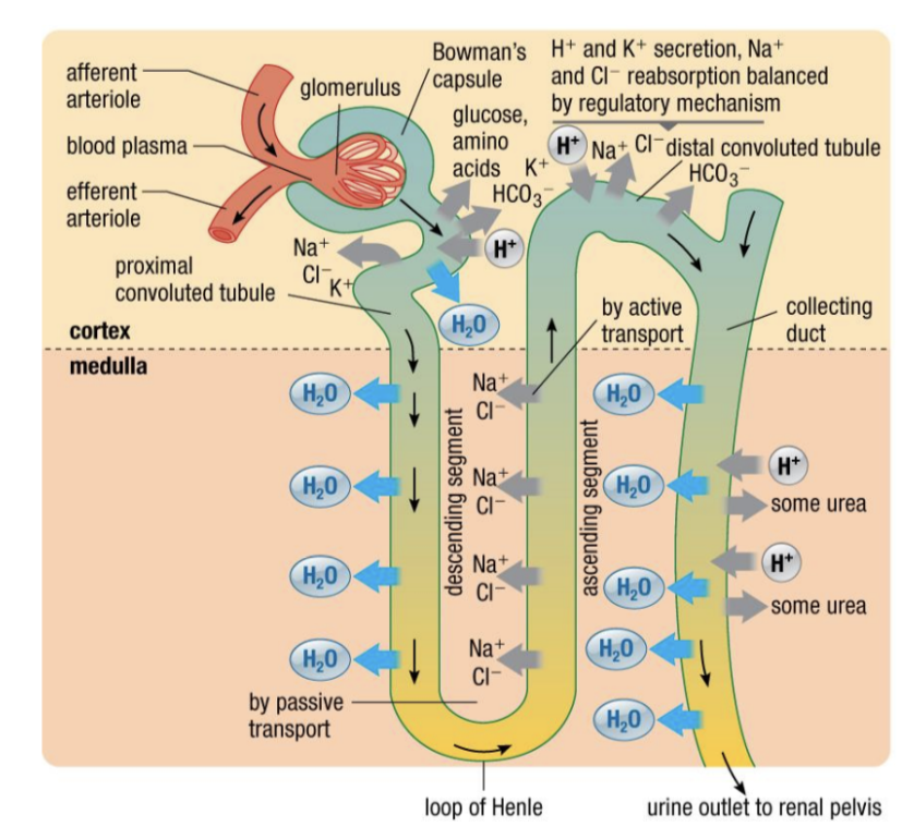 - nutrients (glucose, amino acids) are actively reabsorbed