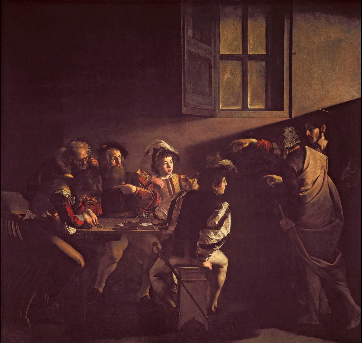 Caravaggio. The Calling of St. Matthew, Contarelli Chapel, c. 1599-1600. Oil on canvas