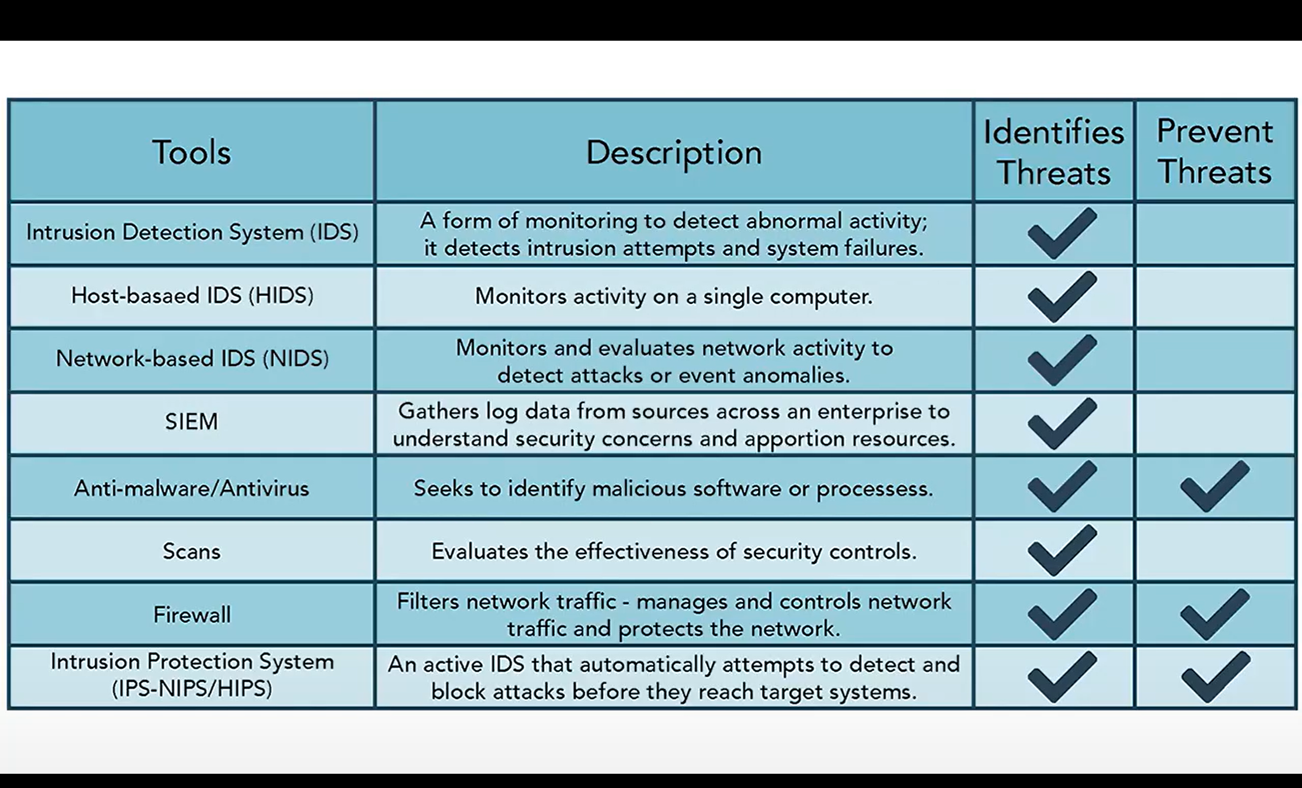 network based- monitors a network, SIEM - Security Information and Event Management - collect info about IT environment and respond based on necesary resource allocation ather log data from various sources across the enterprise to better understand potential security concerns and apportion resources accordingly.