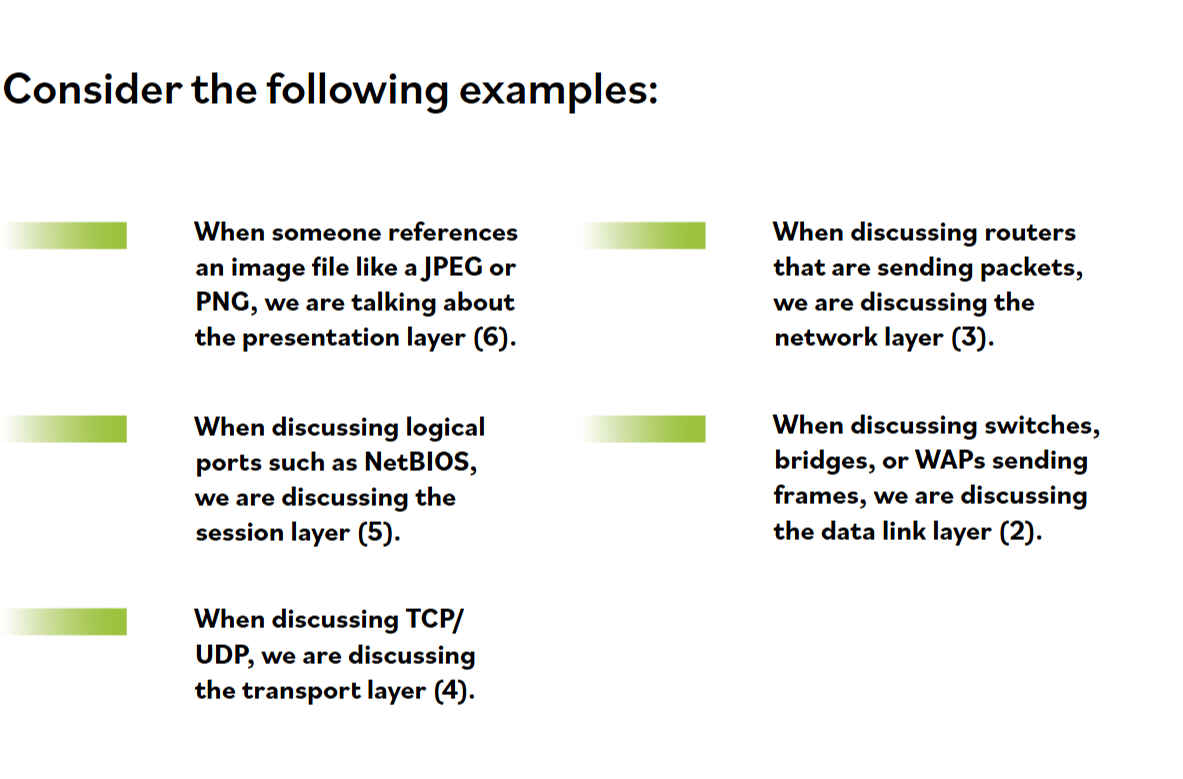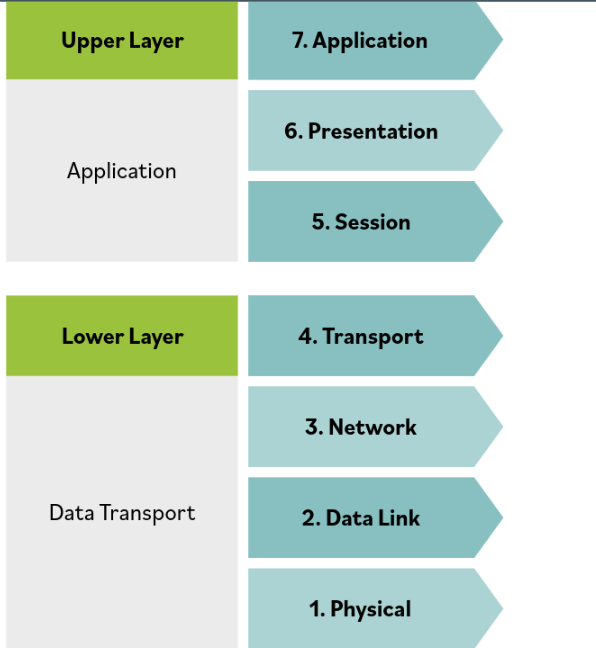 OSI Layers:Physical, Data Link, Network, Transport, Session, Presentation, and Application.