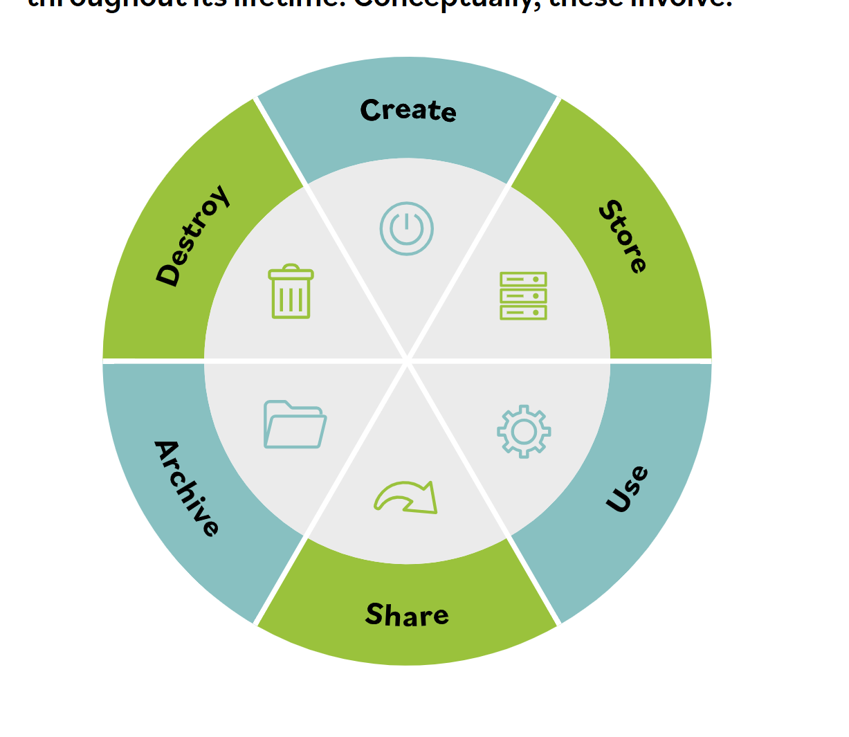 6 MAJOR LIFE CYCLES OF DATA PRODUCTS: Create, Store, Use, Share, Archive, Destroy