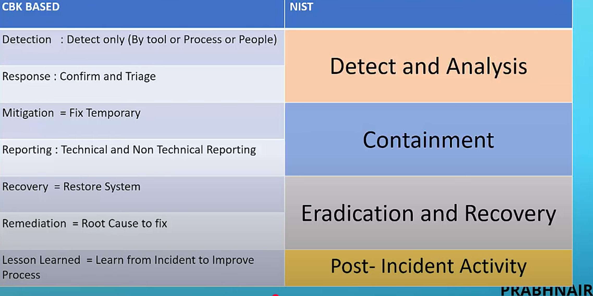 Preparation, Detection and Analysis, Containment Eradication and Recovery, and Post Incident Activity.