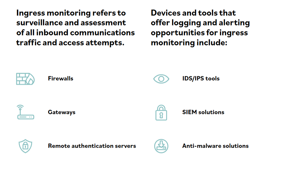 Ingress monitoring- refers to surveillance and assessment of all inbound communications traffic and access attempts.