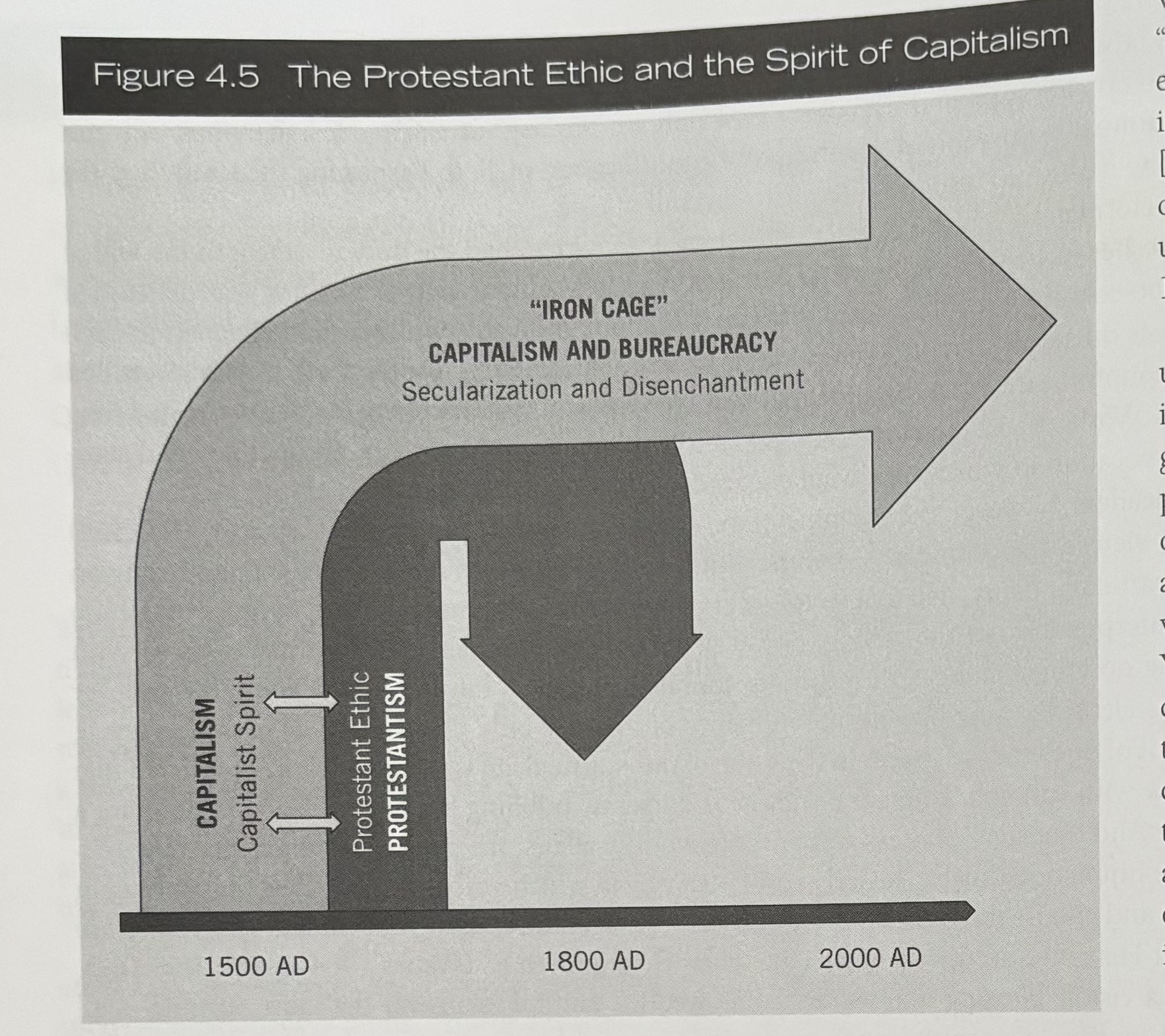 Figure 4.5 traces the historical arc from Protestantism to capitalism to the iron cage, showing disenchantment.