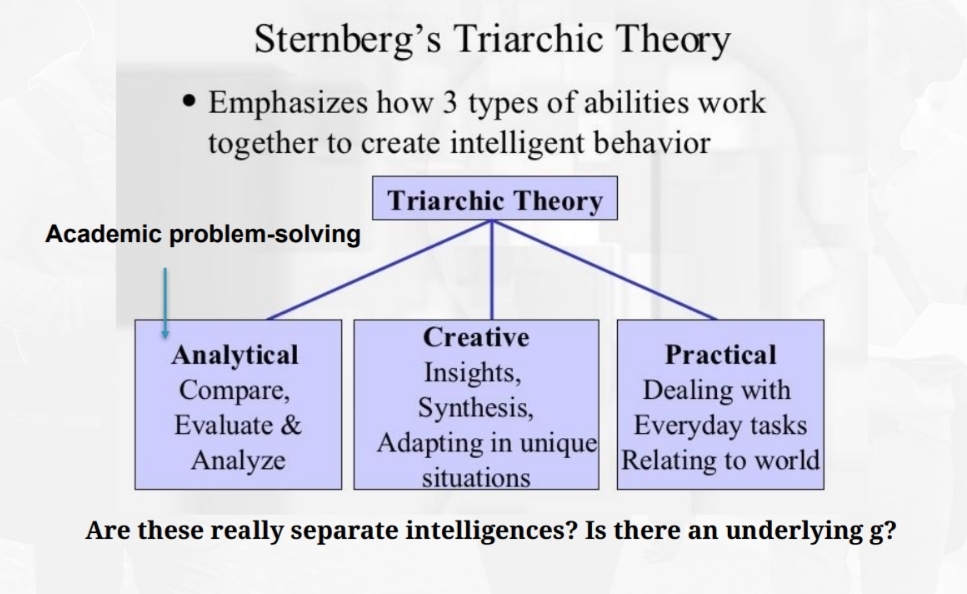 Ephasizes how 3 types of abilities work together to create intelligent behavior