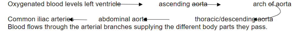 - Arterial division - main vessels is the aorta - largest artery in the body which carries oxygenated blood aortic valve