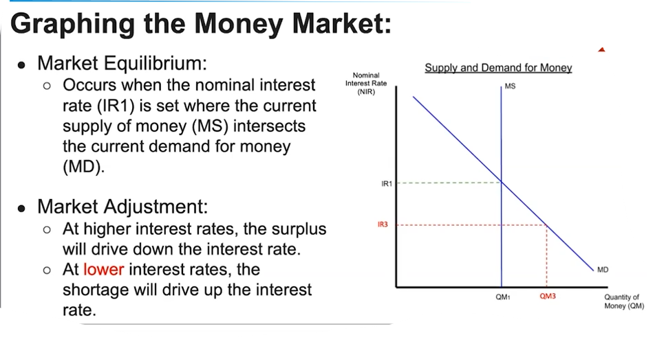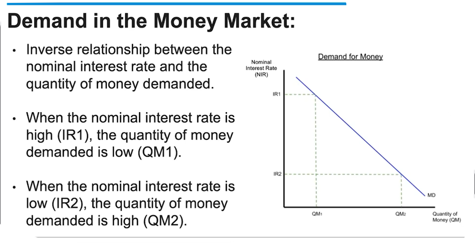 Deals with nominal interest rates because the NIR is the opportunity cost of holding money. it is the price in the money market because it reflects the opportunity cost of holding M1 money. What you give up when you hold money is the opportunity to earn nominal interest rate