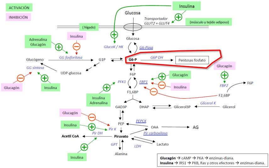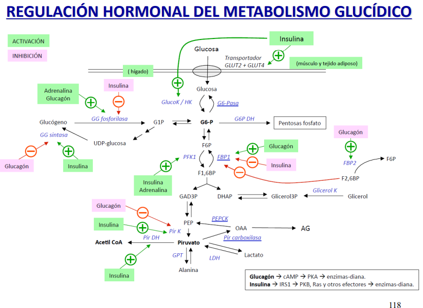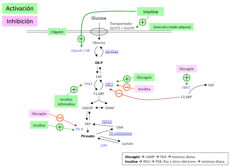 Insulina → activará las fosfatasa produciendo una detención de la glucólisis.