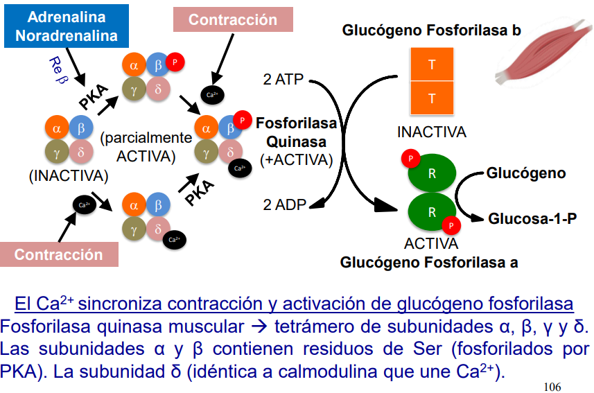 La unión de Ca se da por el impulso nervioso, mientras que la fosforilación vienen dada por acción hormonal